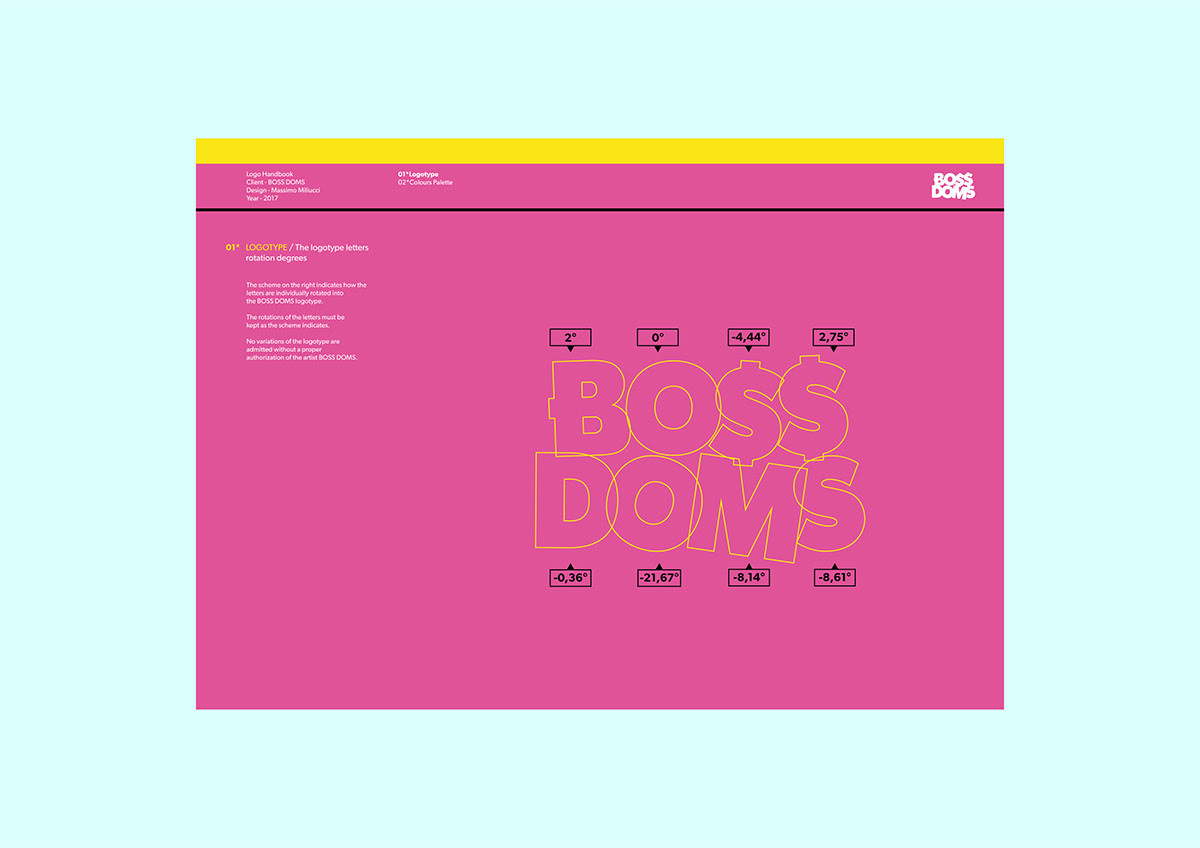 Boss Doms is an electronic,trap and hip hop music producer from Rome,Italy.He's the mind under many beats produced for artists such as Achille Lauro,Noyz Narcos and Quarto Blocco crew. I created a logotype for BOSS DOMS which is fresh,punk and straight at the same time,reflecting his eclectic character.